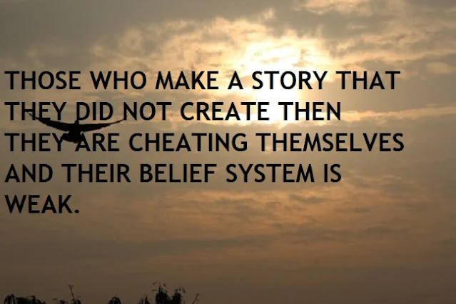 THOSE WHO MAKE A STORY THAT THEY DID NOT CREATE THEN THEY ARE CHEATING THEMSELVES AND THEIR BELIEF SYSTEM IS WEAK.